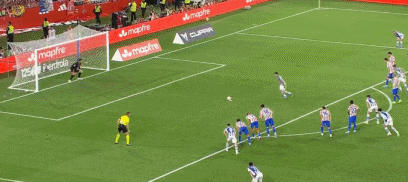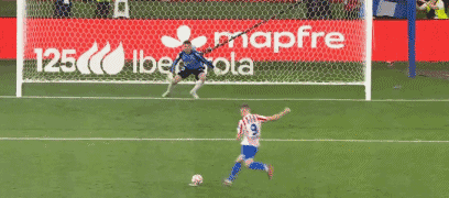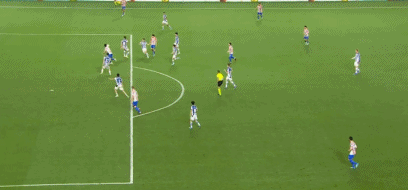 第24分钟,阿兰布鲁右路斜传,格德斯中路包抄停球抽射,普维尔放铲形成折射,直奔右上角而去,擦着立柱偏出,马竞逃过一劫。