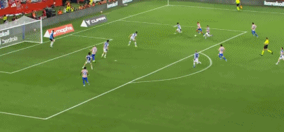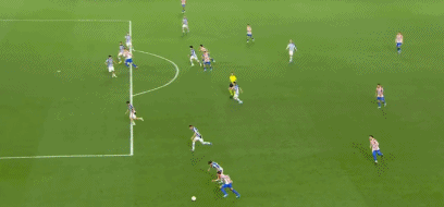 第83分钟,巴埃纳左路传中,马科斯-略伦特右路回敲,阿尔马达横传,阿尔瓦雷斯世界波直挂死角,马竞再度扳平,2-2!