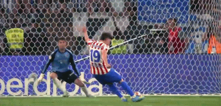 第82分钟,阿尔瓦雷斯禁区边拔腿怒射,皮球直挂死角,马竞2-2皇社