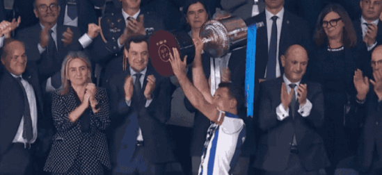 奥亚萨瓦尔作为皇家社会队长,领取国王杯冠军奖杯