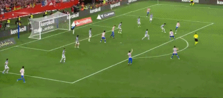 第45+1分钟,格德斯造点,奥亚萨瓦尔主罚命中,马竞1-2皇社